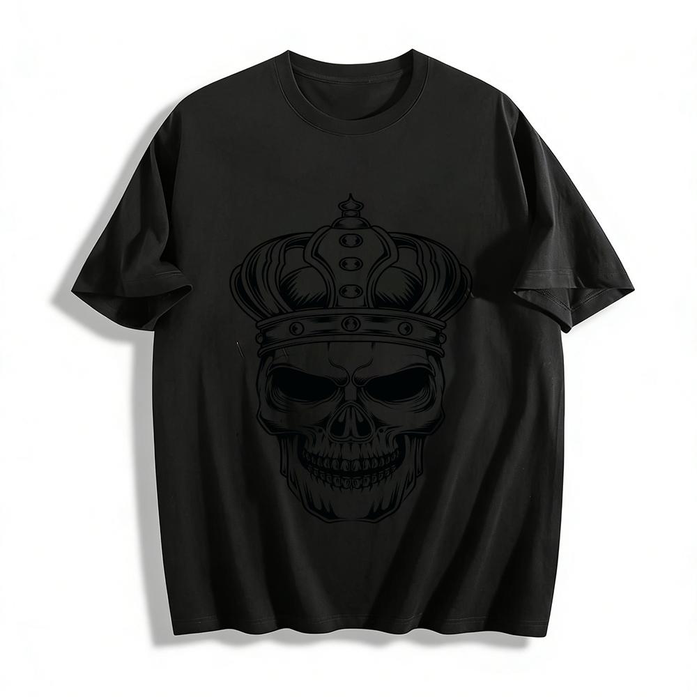 Dark Skull Crown Print Trendy Casual Crew Neck Short Sleeve T-Shirt Pure cotton T-shirt
