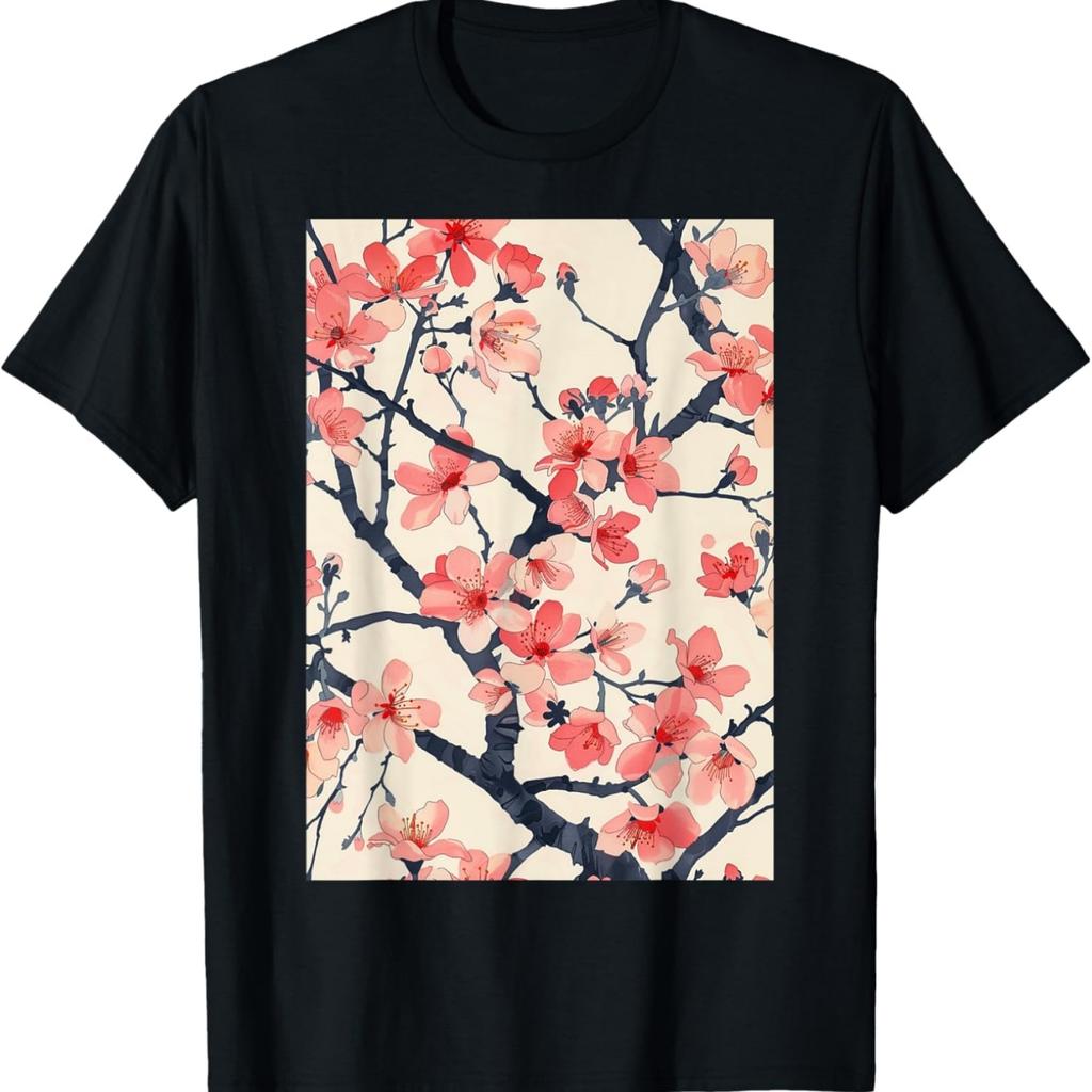 Vintage Minimalistisch Cherry Blossom Kunst T-shirt