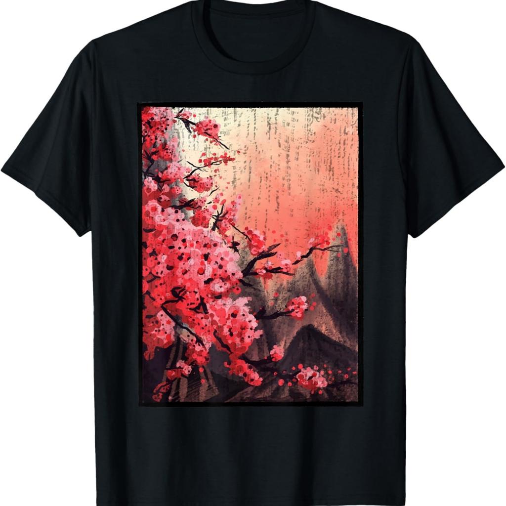 Vintage Woodblock Cherry Blossom Sakura Flower T-Shirt