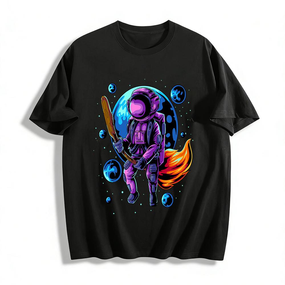 Astronaut Baseball Player Graphic Casual Tee Pure cotton T-shirt