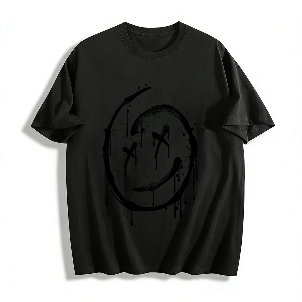 Graffiti X Ogen Smiley Gezicht Print Casual Unisex T-shirt Puur katoenen T-shirt