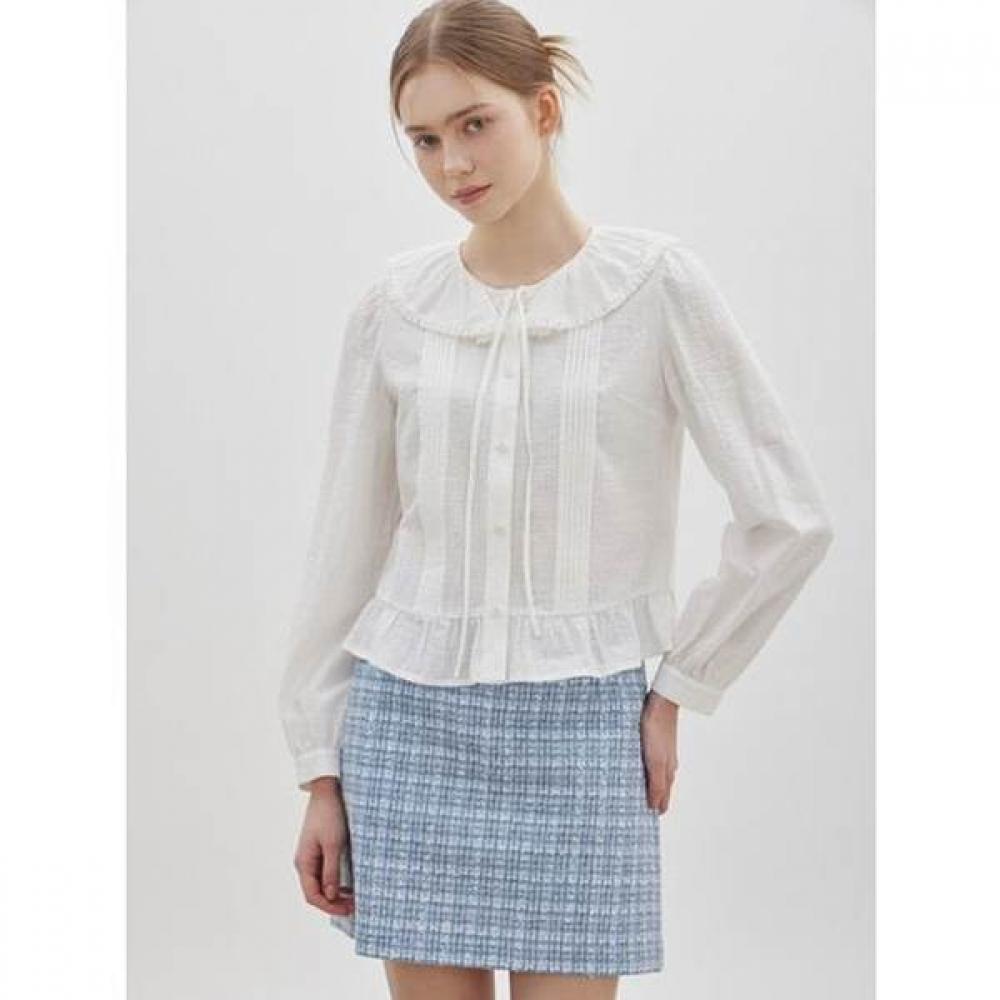 The CC Collect Lace Pintuck Blouse (C261MSC003) features elegant lace details that stand out, designed as a women's casual blouse. The pintuck design creates a soft silhouette, allowing for versatile styling. The fabric has a suitable stretch, providing excellent wearing comfort.