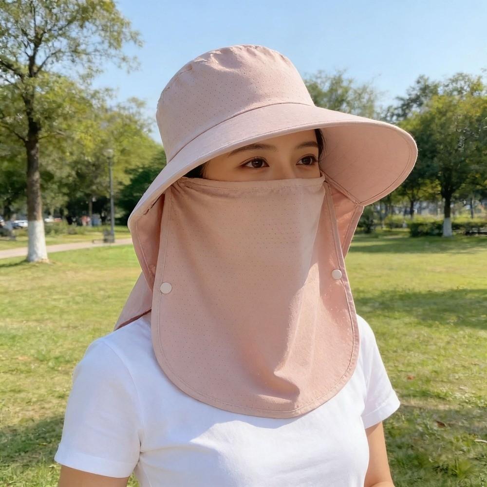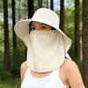 Wide-Brimmed Sunshade Sun Hat Solid Color Picking Tea Hat Windproof Rope Shawl Mask Hat Jogging