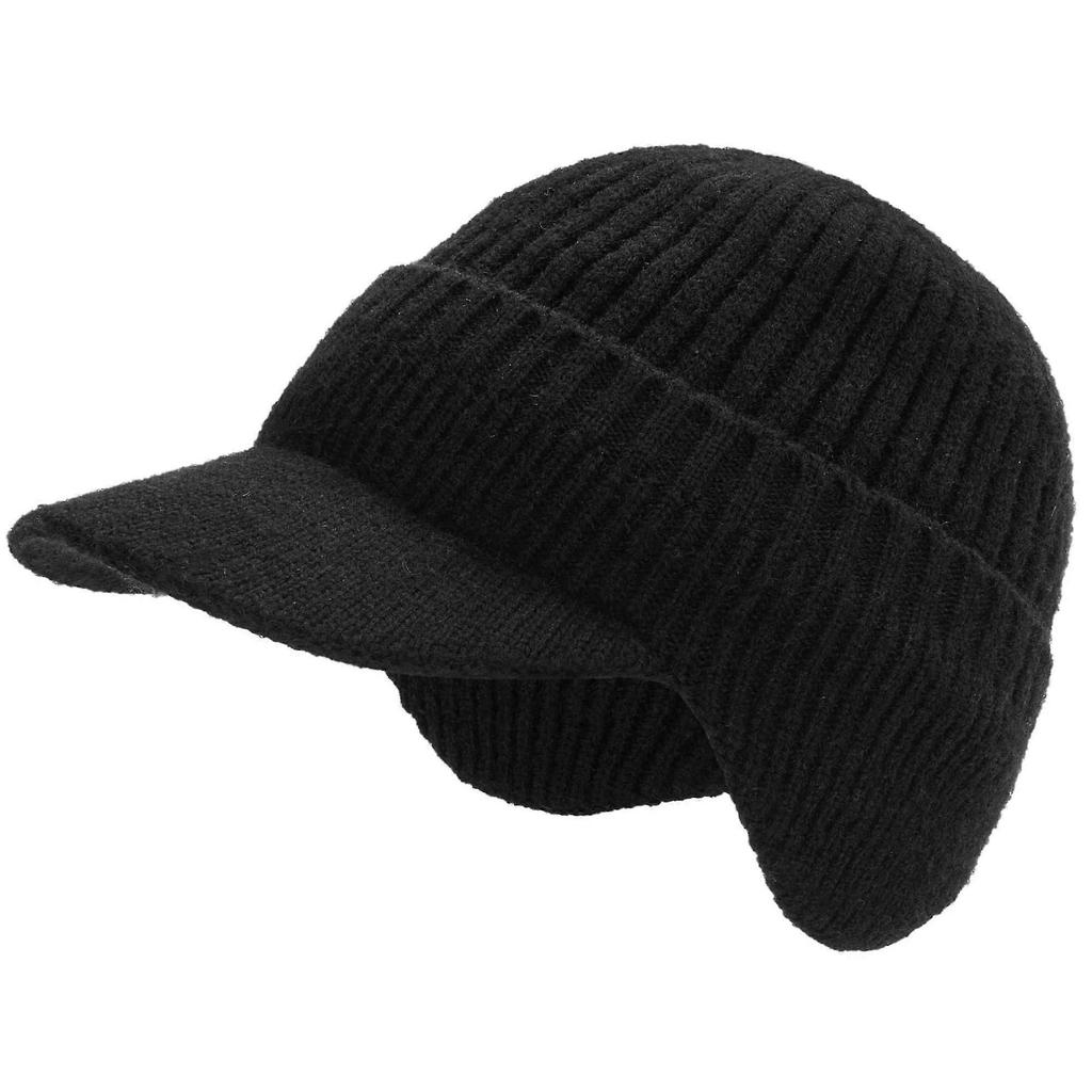 Winter Visor Beanie Hat with Earflaps for Men Warm Fleece Lined Knit Baseball Cap Ski Hat