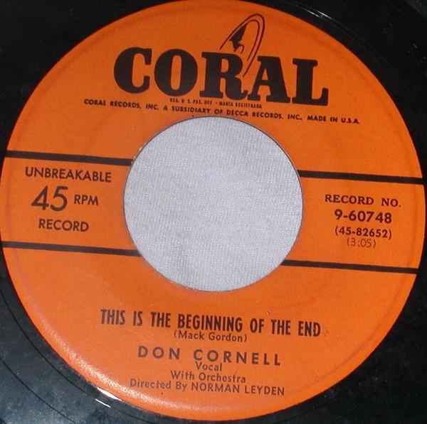 7inch Record DON CORNELL This Is The Beginning Of The End 960748 Coral 1952 US Pop Used