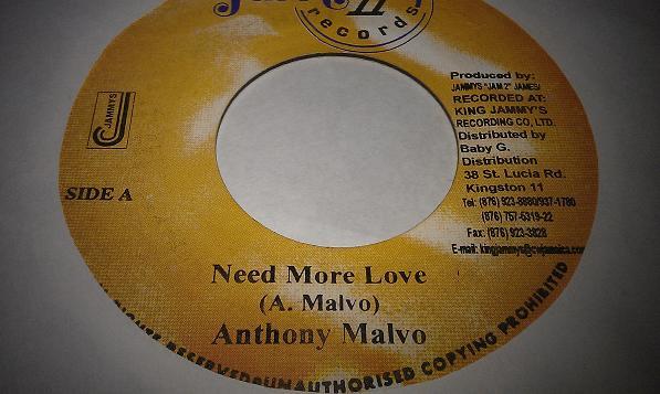 7inch Record ANTHONY MALVO Need More Love NONE Jam II Records 2002 Jamaica Reggae Ska Dub Used