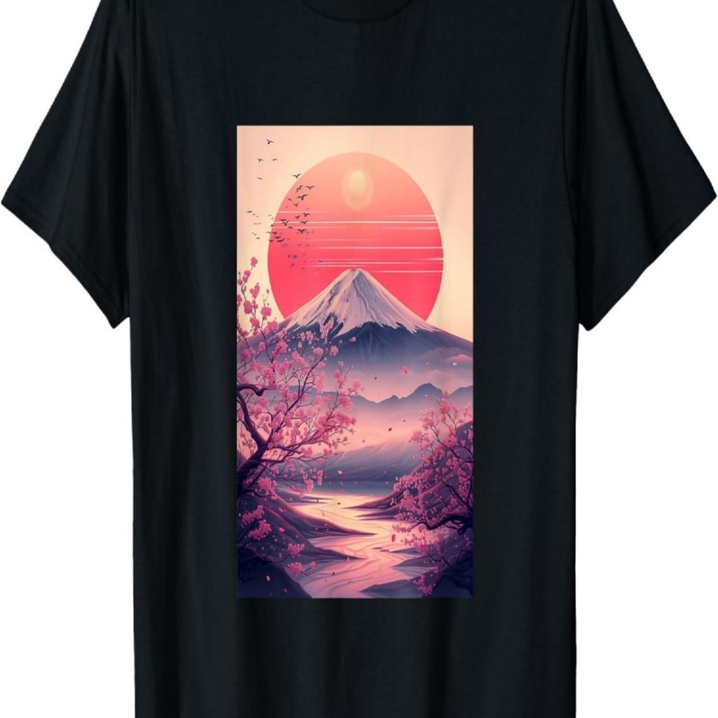 Mount Fuji Cherry Blossom Ornamental Japan Pink T-Shirt(1)