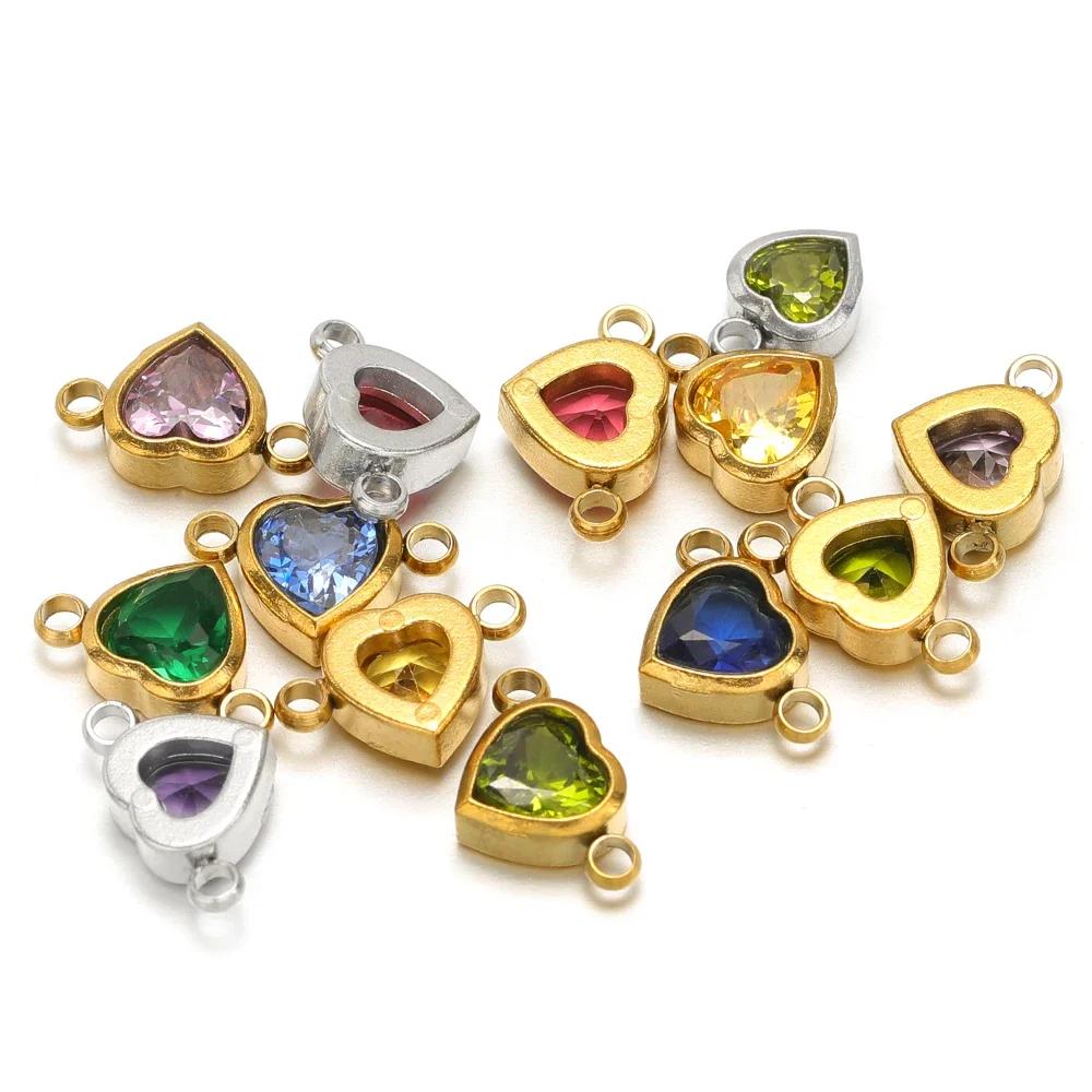 10 stuks Roestvrij Staal 12 Maanden Geboortesteen Hart Zirconia Bedeltjes Connector DIY Sieraden Onderdelen Ketting Armbanden Oorbellen Maken