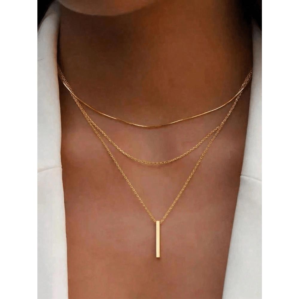 1pc Women's Fashionable Simple Square Multi-Layer Necklace