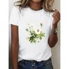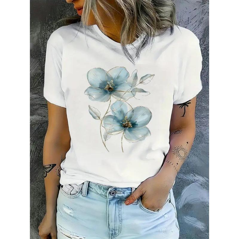 Short sleeved T-shirt with printed European and American plant flowers