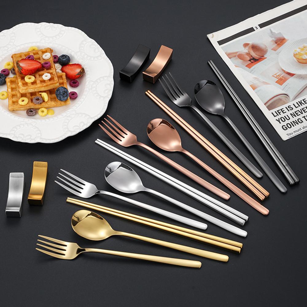 4Pcs 304 Stainless Steel Cutlery Set Sushi Sticks Dinner Spoons Set Dinnerware Korean Chopsticks Fork Spoon Flatware Set