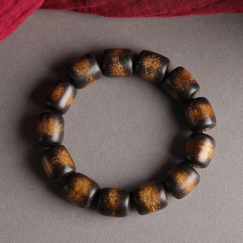 Natural high-end lightning-striken Dalagan golden thread agarwood bracelet, old material black oil Buddhist beads for women and men